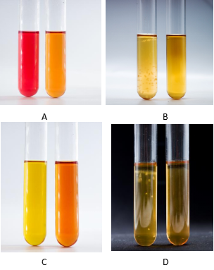 圖A:精氨酸支原體肉湯培養結果,左邊紅色為陽性右邊橙色為陰性;